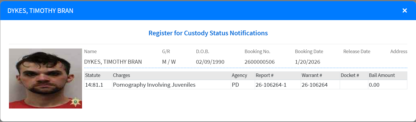 Legal Status: Arrested